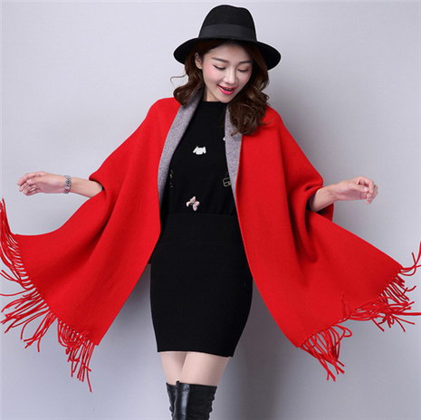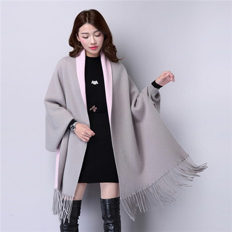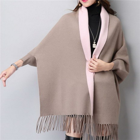 百搭流苏毛衣斗篷式针织毛衣